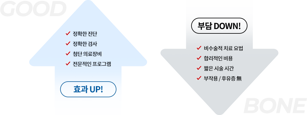 굿본은 무조건 수술을 하는 것 보다는 환자분 본인의 관절을 재생하여
