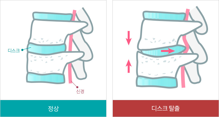 디스크가 탈출되면 척추후방의 신경을 압박하게 되어
